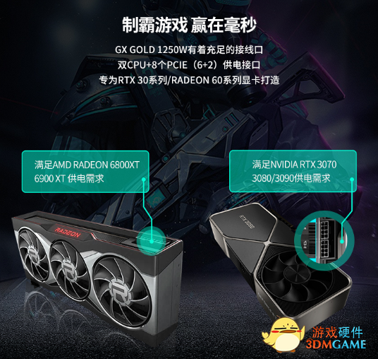 GX 1050&1250W金牌全模组电源专为RTX 30系列/RADEON 60系列显卡打造,并且搭配全黑扁平线材,轻松布线、无压力整理机箱背部线材。