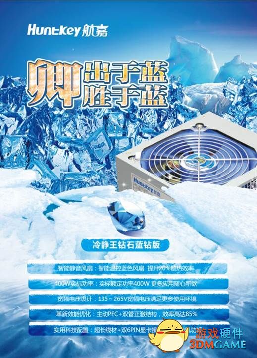 航嘉冷静王钻石蓝钻版电源额定功率400W,专为高温环境设计;超强动力,支持高端显卡,支持背部走线;该款电源满足各类用户群体使用需求。在2017新年即将来临之际,“卿出于蓝,胜于蓝” 航嘉冷静王钻石蓝钻电源为你带来全新升级体验。