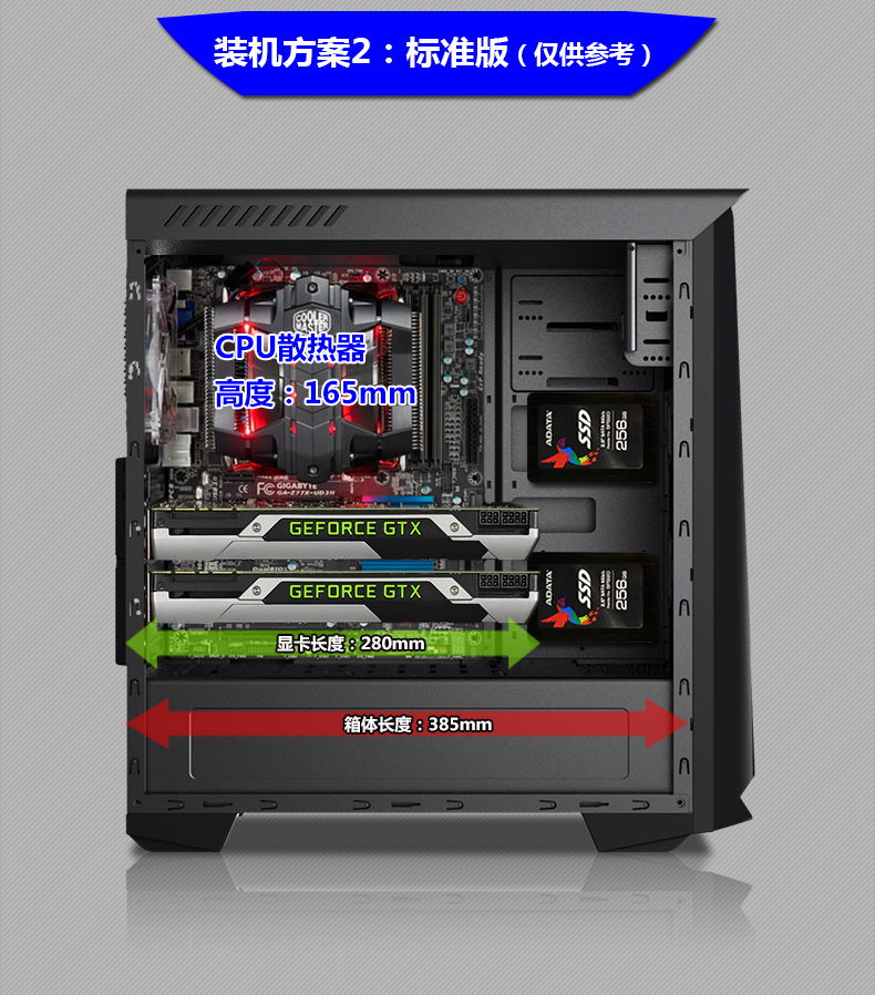 标准版装机兼容高性能CPU和长显卡,让用户非常放心,体现出产品的实用需求,让服务更加完美。