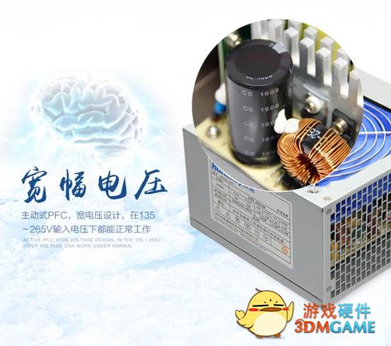 冷静王蓝钻的额定功率为400W,采用主动式PFC,宽电压设计;在135~265V输入电压下都能正常工作,从而避免硬件由于电压的波动受到损害而缩短寿命。高达85%的转化效率,更加节能省电,同时又能基本满足i7-7600K +GTX1060这种高端配置玩家的日常娱乐。高颜值的实力派!
