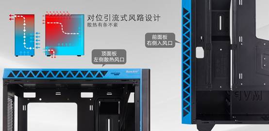 散热风道设计非常用心,采用对位引流式风路,全方位风冷系统。前入后出,兼顾顶部热风同步抽出,高配6风扇位,自然风可顺畅流动,加速散热。