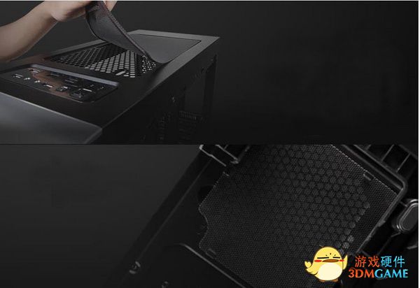 顶部和电源底部电源仓位置均采用时下流行的磁吸防尘网设计,减少机箱进灰的同时,更能方便玩家清理机箱。
