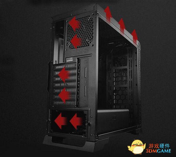 在硬件工作的时候,机箱内部的热量不能及时的排出就会影响硬件的发挥,甚至会对硬件产生永久性的损害。长城V200RGB采用高效立体散热风道散热,机箱前置面板配备3个RGB炫光风扇,同时顶部和背部共预留了三个120mm的风扇位,就算是全风冷装机也能保持机箱内部的清凉爽快。
