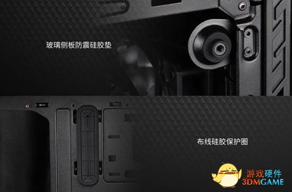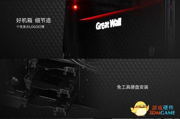 在细节方面,长城T600为玩家打造了个性的发光信仰LOGO灯,免工具硬盘的安装让玩家在安装以及硬盘的时候得心应手;玻璃侧板防震硅胶垫的设计可以更好地保护钢化玻璃侧板;布线硅胶保护圈理线方便美观,简简单单几个细节展现该机箱为游戏玩家而定制的真诚态度。