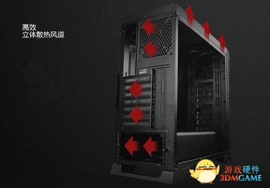 长城魔镜V200机箱拥有宽大的空间,可以兼容E-ATX、ATX、M-ATX、MINI-ITX主板。分体式的结构设计,为玩家预留6个风扇安装位,前面板两侧入风口采用特别的设计,在保证进风量的同时也提升了机箱的整体美感。内部充裕的空间方便玩家打造风冷或水冷散热系统,形成高效的立体风道全方位散热,可操作性强劲,满足高配置硬件运行的低温环境。