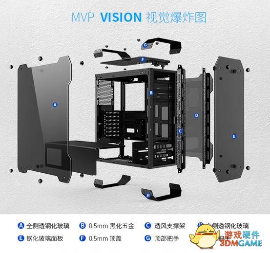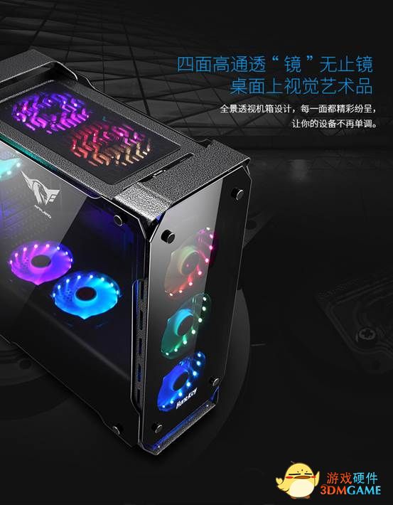 侧透面板机箱现在已经非常常见,而MVP Vision机箱采用四面高通透,使得可视面积更大,从而让机箱内部硬件的灯光效果能够充分地从不同方位全部展示出来,视觉效果非常震撼,让DIY机箱每一面都精彩纷呈,让你在享受硬件的过程中不再单调,不管是玩水冷还是风冷,让你又一次引领DIY硬件潮流,让你的装备在女友或伙伴面前倍感有面子。