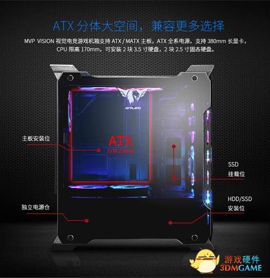 高端散热器、高端显卡的体积较大,如果机箱内部空间小了还真装不下。MVP Vision 机箱作为一款电竞机箱,为高端游戏配置进行了充分的考虑。可以支持安装最长380mm长显卡,要知道目前最长的GTX 1080Ti也才320mm不到,各种高端显卡均可以轻松放入机箱中。机箱对散热器的支持也不错,不仅可以支持170mm高的CPU风冷散热器,也对各种水冷冷排有良好的支持,不管是大型风冷还是水冷,都可以轻松安装,打造最具个性的水冷MOD。机箱也提供了丰富的硬盘安装位,玩家可以搭配高性能SSD和多个大容量机械硬盘,组建强大的存储系统。而且,电源独立仓设计,让机箱分区散热。这么多的优点,MVP Vision 机箱就是助你打造性能强悍又有高颜值的电脑主机。