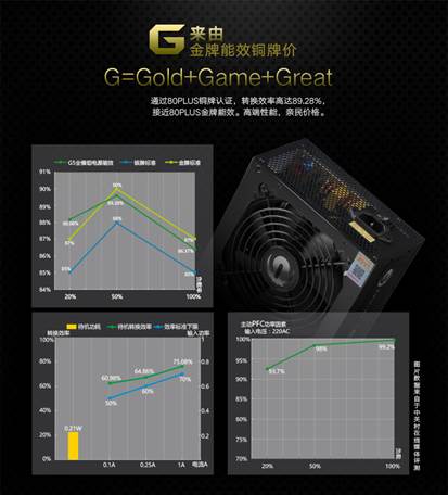 从公开的数据可以得知,这款由老牌机电产品长城机电推出的全模组游戏电源G5,转换效率高达89.28%,接近了80PLUS金牌认证的标准。这意味着产品的性价比大大超出了同类型产品,因为可以用铜牌的价格购买到接近金牌认证产品的品质。