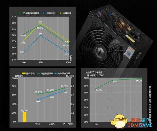 长城G5在能效上的表现也很不错,该电源通过了80PLUS的铜牌认证,转换率为89.28%,接近金牌认证的转换能效,对于运行时长高于其它类型的游戏主机来说,长城G5电源能更让玩家省心、省电。