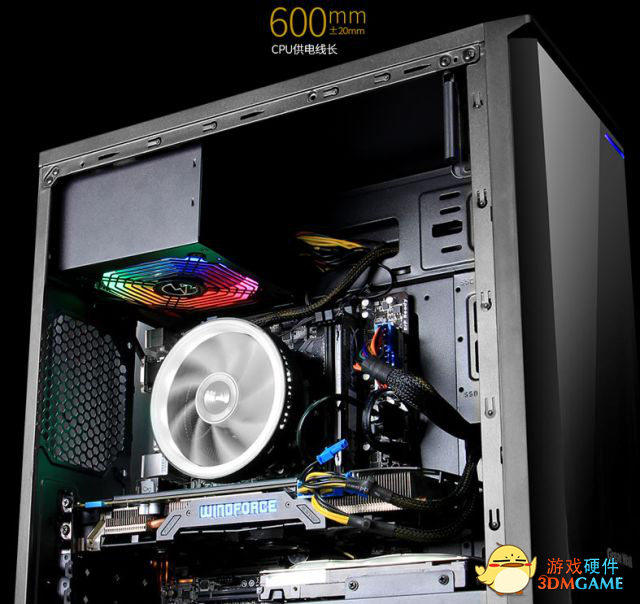 600mm超长线材,完全支持背板走线,给机箱内一个干净整齐的内部空间,有利于RGB光的传播和空气流通