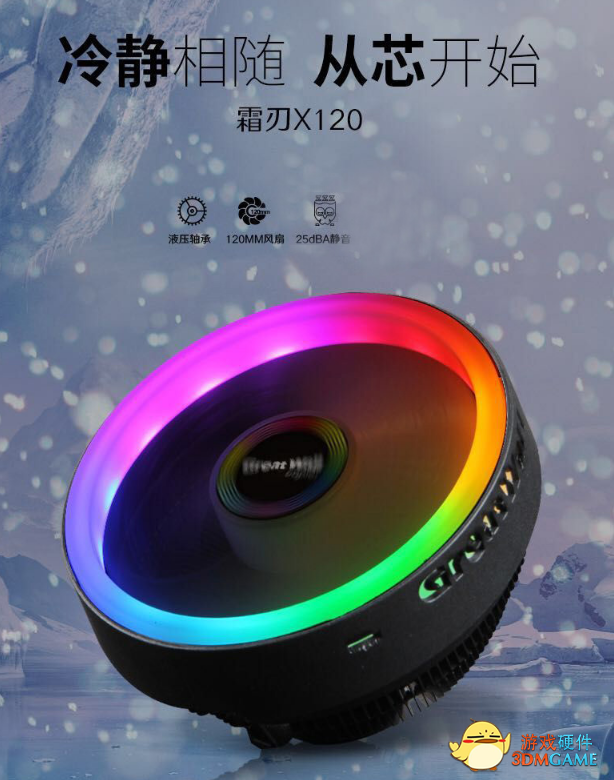 CPU散热器的风扇设计有两种,一种是下吹方式,还有一种就是侧吹方式。今天我们介绍的这款霜刃X120则是采用下吹方式,下吹式结构更为简单,有利于节省机箱内部空间。 散热器它的最终目的就是散热,CPU散热器系统由三部分组成:底片、鳞片、和风扇。底面的贴合度直接影响到热量的通导性。X120镜面铣底,吸入更充分,铝制散热鳍片具有较好的导热能力,每一片散热片保持的相同的间距又紧密的扣合散热更有效,增强版液压轴承、120mm 风压型9叶片风扇动力十足。 对于现在的DIY玩家来说不仅要追求性能,美观也是也变得同等重要,美观一般注重两个方面,造型个性化设计和灯光效果。现在流行采用的RGB光圈会让散热器十分动感。 注重静音的玩家尤其会注意散热器的风扇,也是主机中主要的噪音来源。风扇的轴不同,性能和噪音也会有差异。X120采用液压轴承强磁驱动,有效的消除噪音。 下吹式CPU散热器安装也较为简单,自带有一个散热器底座,先固定底座的四角,然后把散热器扣在底座上即可。 实拍装机效果,可以看出霜刃X120集美观和性能于一身的CPU散热器。