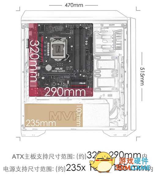根据官方的介绍说该款机箱支持最大320MMX290MM的主板和235MMX100MM的电源,感觉真的不是吹牛逼!