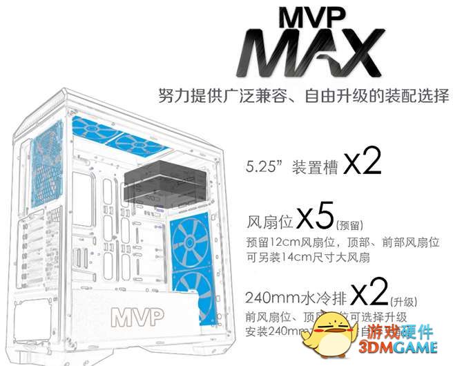 继前几年航嘉推出MVP500游戏电源和MVP机箱之后,MVP这个系列以及概念广受大家的好评,为了延续MVP传奇,为了更好诠释MVP游戏的理念,近日航嘉又推出一款MVP机箱。该款机箱就是MVP Max!没有错,从字面上看到的意思就是大!该款机箱可以放下双240的冷排!如果你刚好需要一款大机箱,那么请看下面的装机体验!