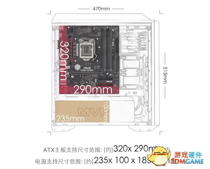 支持大主板, 同时也为分体式水冷的水箱和泵提供了大的DIY空间!