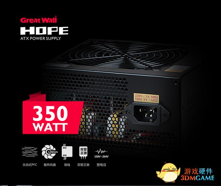 该款电源的额定功率为350W,可以轻松应付大部分的办公和娱乐机!