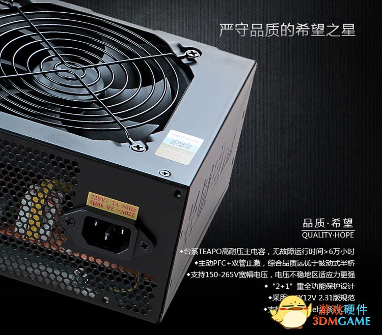 简评:该款电源拖动一般性能的电脑足够,长城提供三年质保;1年内换新,1-3年维修不换新,可以让玩家放心使用!