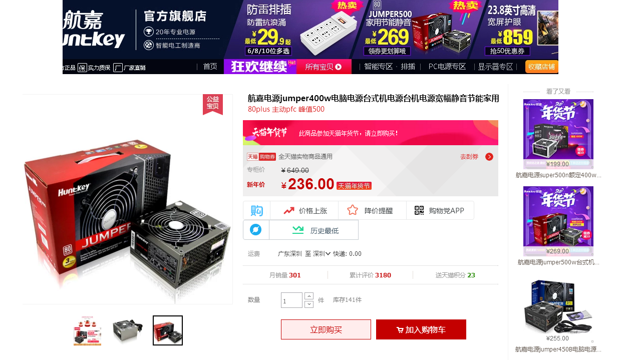 航嘉这款super500n电源一直以来就是电商装机最喜欢用的一款了,这款电源额定功率400W,采用主动式PFC,转换率达70%,而这款产品的定位主要在于家用以及办公,目前售价领券后仅需189,而且下单还有迷你排插送,有兴趣的玩家可以点击链接前往购买。