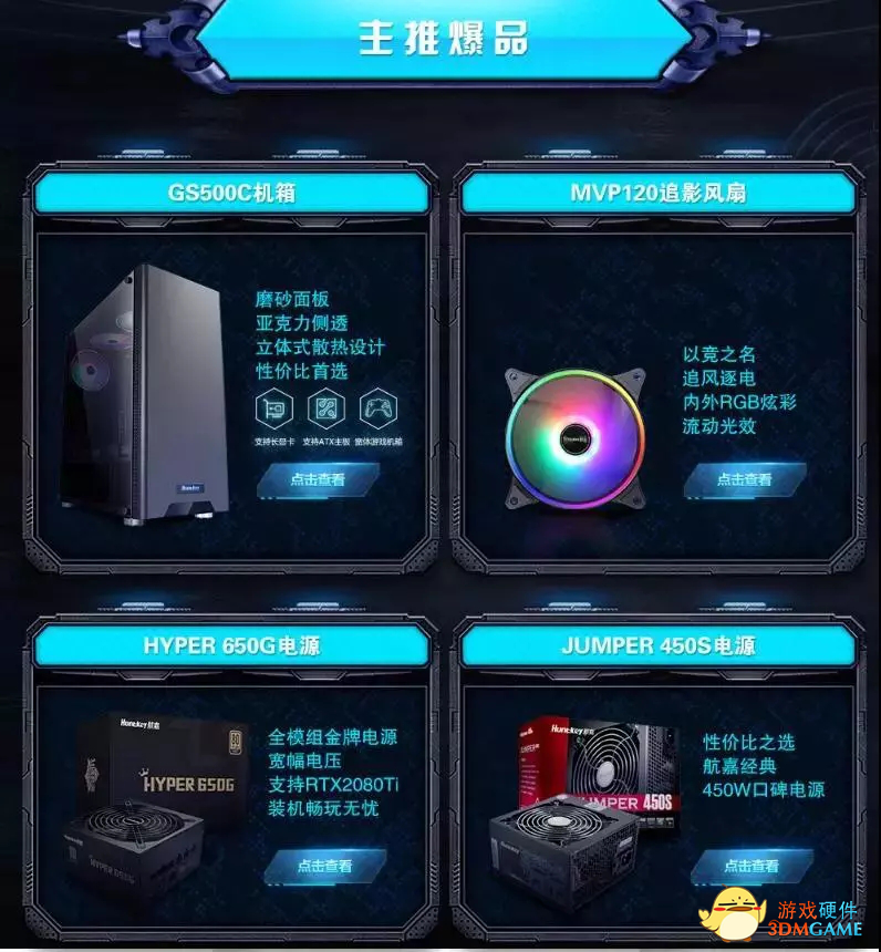 在这里,小编首先要给大家几款航嘉主推爆品,机箱电源和风扇,绝对是电竞必备,要选就要选好。