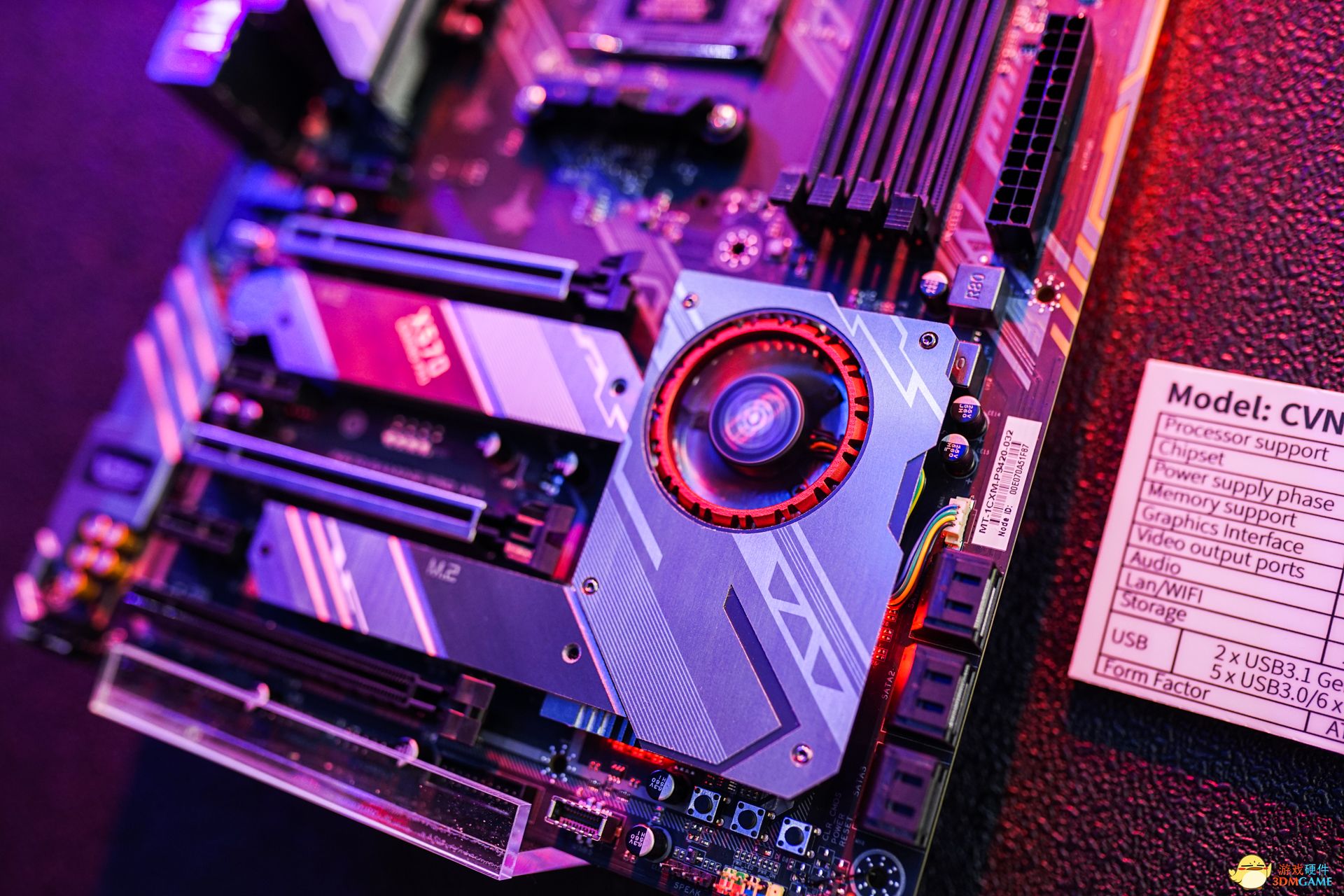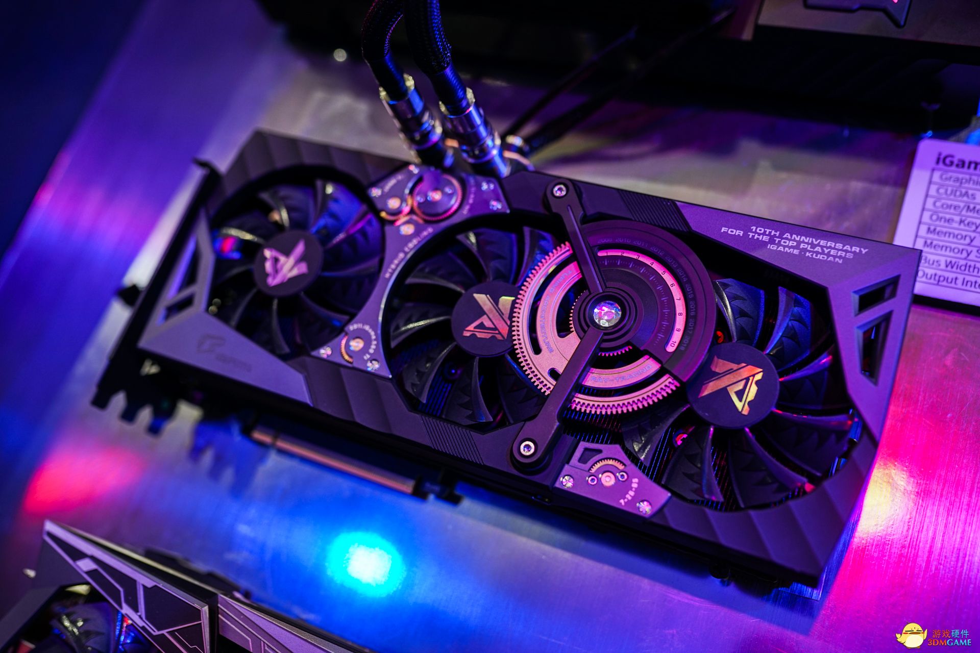 此外,在年初限量发布的iGame RTX2080Ti九段也来到了本次展会,蒸汽朋克式的外观设计加上水冷+风冷强劲散热方案让它成为众多非公版显卡中一道闪亮的光,与他一同亮相的还有iGame X570主板。
