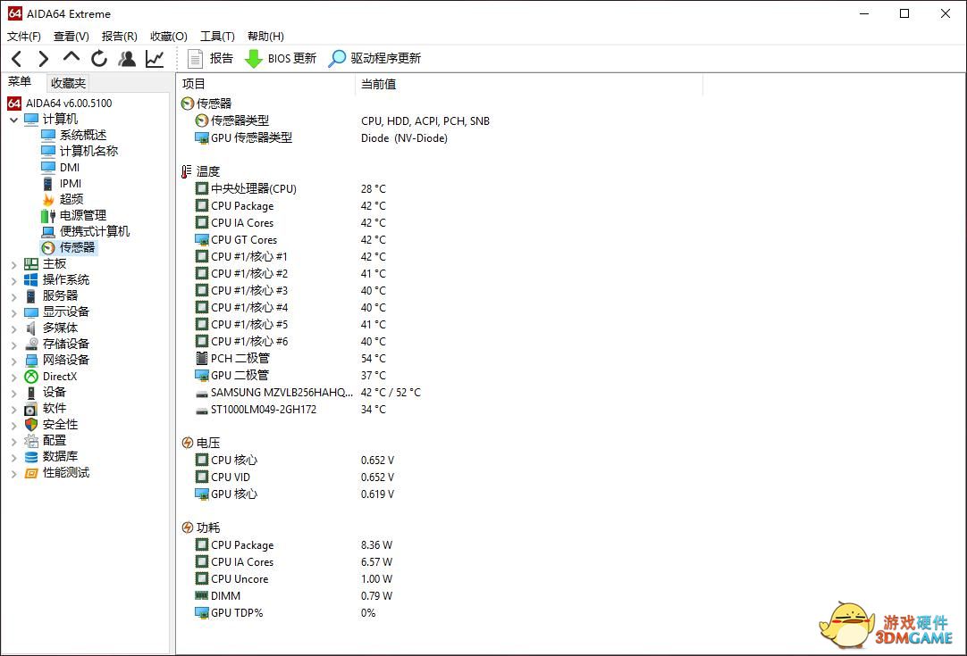 在AIDA64的待机测试中,G-ONE的待机温度表现,CPU仅维持在40度左右。