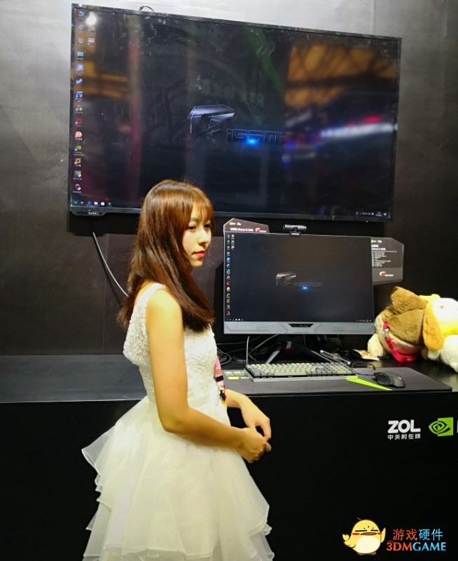 在“RTX畅流直播”区,直播搭档游戏整机悉数亮相,对于“直播”这样一个新新的潮流趋势,越来越趋向于专业化,因此对于直播搭档PC电脑的配置需求也日益高阶。在陈列的整机系列中,iGame G-ONE作为展示的机型中唯一款游戏一体机,仅一块电竞显示屏厚度的机身,纤薄一体,自然吸引了众多小姐姐的青睐,G-ONE在 配置上除了搭载intel core 八代处理器和NVIDIA RTX 20系显卡保障游戏性能外,还具备27寸 2k 144Hz,95%DCI-P3色域专业级电竞显示屏,高颜值高性能的G-ONE绝对是新晋的直播”利器“。