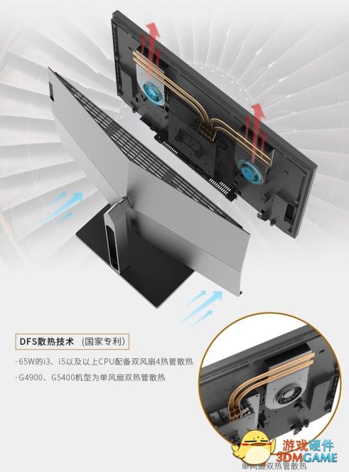 说道性能的保障就不得不提到散热,众所周知散热是一体机一贯的“痛”点;而onebot L22A1似乎并没有这部分的困扰, AIO产品型号中65W的i3、i5以及以上CPU配备双风扇4️热管散热,G4900、G5400机型为单风扇双热管散热。良好的散热能有效降低温度和噪音,冷静护航,保障性能,带来宁静舒适的使用体验。
