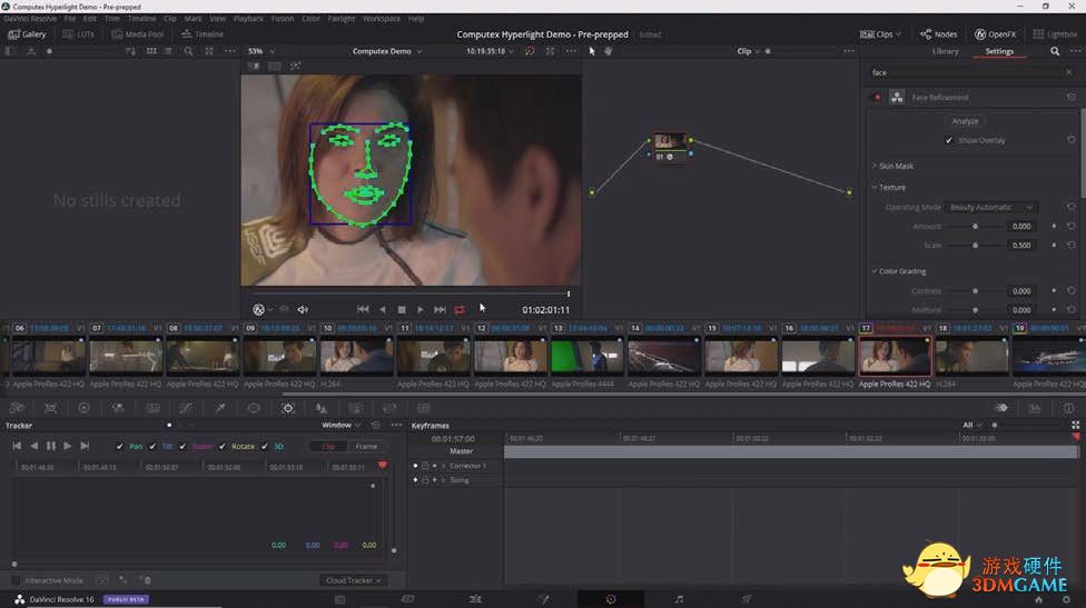 Blackmagic Design集成了GPU加速功能,可以实现更多高级视频编辑和视觉效果,包括在DaVinci Resolve Studio 16中多项基于AI的处理。在演示中的是“面部优化”功能,由AI进行智能识别,对面部特征进行着色和优化。另外DaVinci Resolve还可以利用Speed Warp创建高质量、平滑的慢动作镜头,而无需使用高速摄影机,使用“对象移除”轻松地从视频中移除特定的对象等。