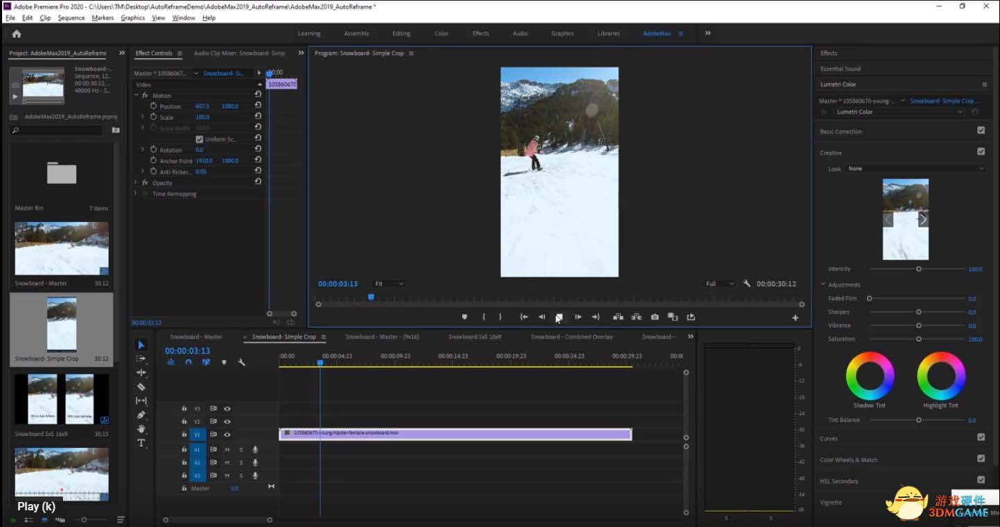 Auto Reframe是在Adobe Premiere Pro创意应用中推出的新功能,藉由GPU加速,AI的性能得以在视频编辑中大展身手。该功能可以利用Adobe Sensei AI精确识别和追踪视频中最相关的元素,根据不同的高宽比智能智能地重构视频内容。最关键的是,使用NVIDIA RTX GPU进行创作,速度相比CPU而言提升最高达400%。