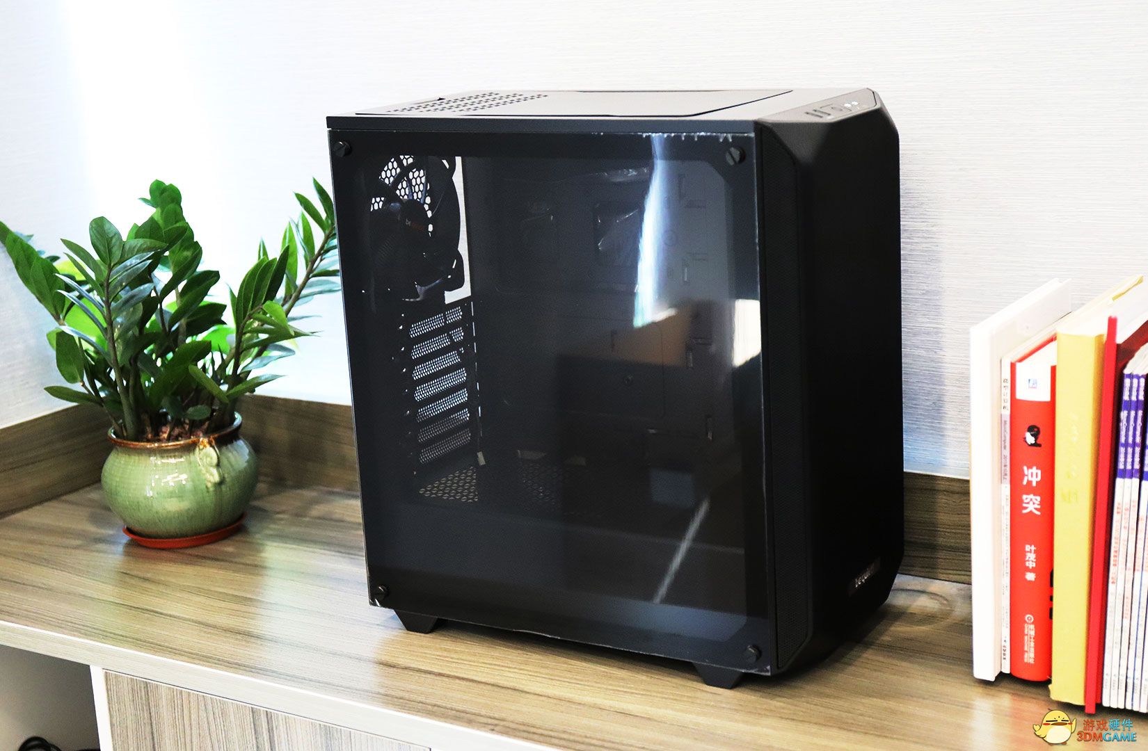 这个PURE BASE 500给人的第一印象是“整体感觉有点微胖但很顺眼”。金属侧板和顶部都贴上了厚实的吸音棉降低噪音,侧透面板为通透性非常高的玻璃材质,能完美呈现显卡的灯效。面板两侧蜂窝状铁网为机箱进气散热孔。出厂标配两把必酷PURE WINGS 2静音风扇,我后面把它换装到支持PWM的版本,达到更精准的控速效果和低噪音。