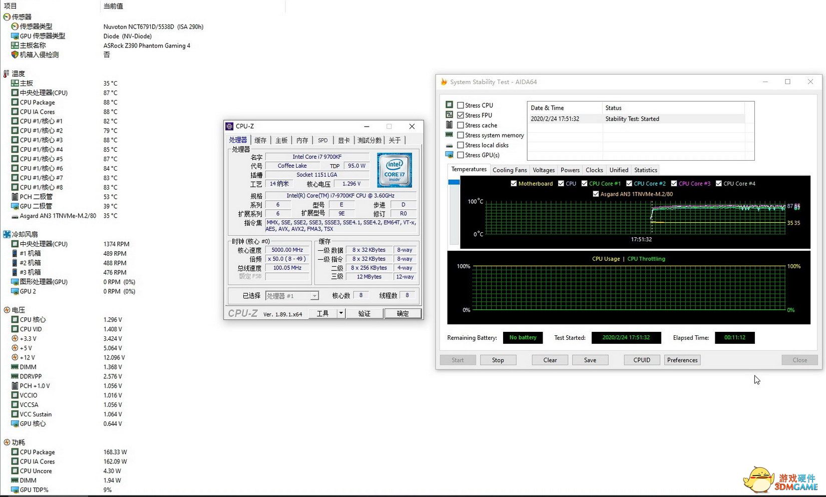 虽然是超薄紧凑型单塔Dark Rock Slim,面对烤机功耗达到170W的5G 9700KF毫无惧色,27度室温下其最高温度不到90℃。相比拥有超线程的99K动辄100℃烤机温度可是舒服多了。