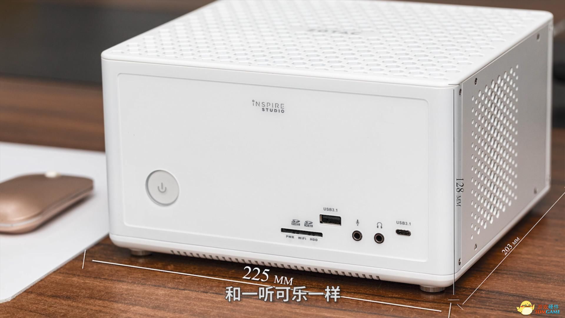 索泰Inspire Studio体型小巧精致,225mm×203mm×128mm的迷你尺寸,体积仅5.85L。