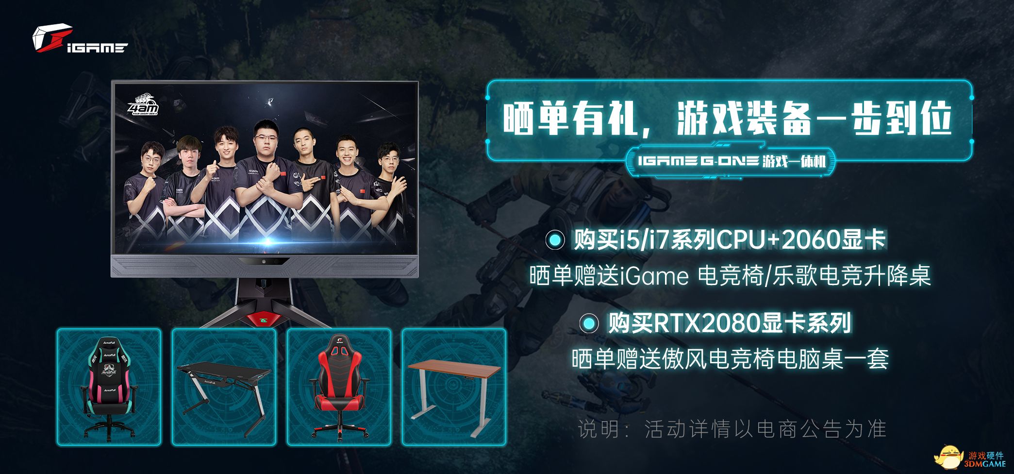 购买iGame G-ONE i5/i7 系列CPU+RTX2060显卡配置G-ONE,晒单即送iGame 电竞椅\乐歌电脑桌(二选一,随机发放);
