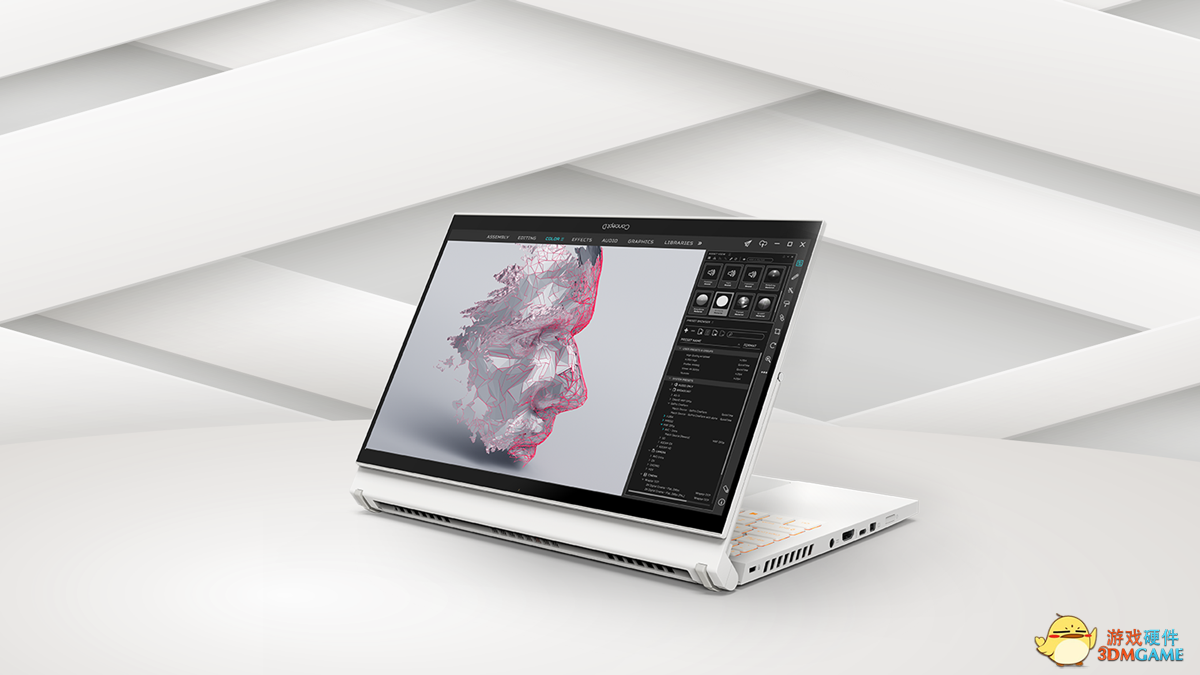ConceptD 3 Ezel是一款可翻转的创作本,为创作者提供最直觉的创作体验,纯白的全金属机身配有琥珀色背光键盘和大面积玻璃触控板,支持多指手势操作。创新Ezel舒感转轴让使用者能够灵活且优雅的在六种使用模式之间切换,包含方便绘画的站立模式、适合呈现创作的展示模式、可调整的漂浮模式、传统模式、平板模式以及分享模式。