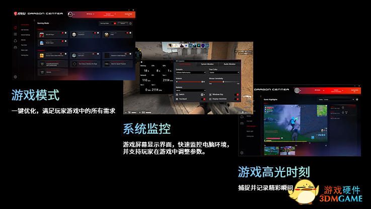 除了硬件之外,微星专为其开发的龙魂控制中心还可让用户轻松对主机性能进行管理,并透过图像化系统进行监控、调整和优化,还有众多实用功能等你去发掘。
