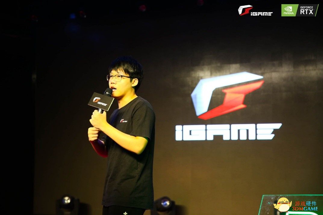 其次由七彩虹显卡策划经理张嘉诚先生分享iGame作为大陆高端硬件品牌商的经验。iGame品牌从创立初期就一直以玩家为核心,打出“玩家定制”的口号,旗下产品线不断扩大,从传统DIY硬件显卡出发,发展出主板、存储、机箱、电源等多个产品线,并且加快自己转型系统提供商的步伐,推出了Sigma整机、G-ONE游戏一体机等系统级产品线,使得产品线愈加的多元化。而作为显卡的策划经理,除了与现场的粉丝们畅聊品牌发展之外,更重要的是揭示深受游戏玩家们喜爱的iGame显卡背后坚持创作的精神信念。