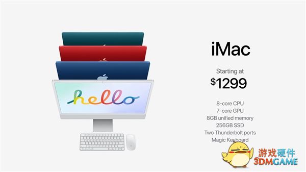 二是八核GPU、两个USB4/雷电接口、两个USB3接口、Touch ID Magic键盘、有线网口,起价1499美元,绿色、黄色、橙色、粉色、紫色、蓝色、银色七种配色,8GB+256GB 11499元,8GB+512GB 12999元,另可选配16GB内存,1TB、2TB SSD。
