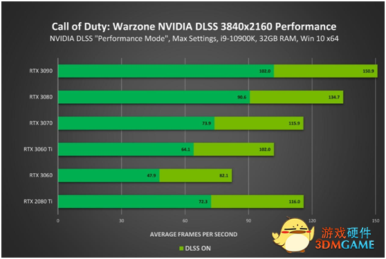 2021年4月22日,热门大作《使命召唤:战区》(Call of Duty: Warzone)和《使命召唤:现代战争》(Call of Duty: Modern Warfare)新增NVIDIA DLSS支持,NVIDIA GeForce RTX GPU玩家将获得免费的性能升级。开启DLSS,游戏性能大幅提升,最高可提升70%。