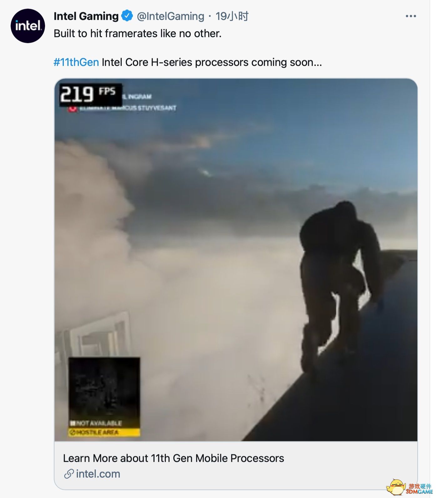 日前,英特尔在推特上预热了新款酷睿 H 处理器,称其将实现无与伦比的帧率而且很快就会发布。