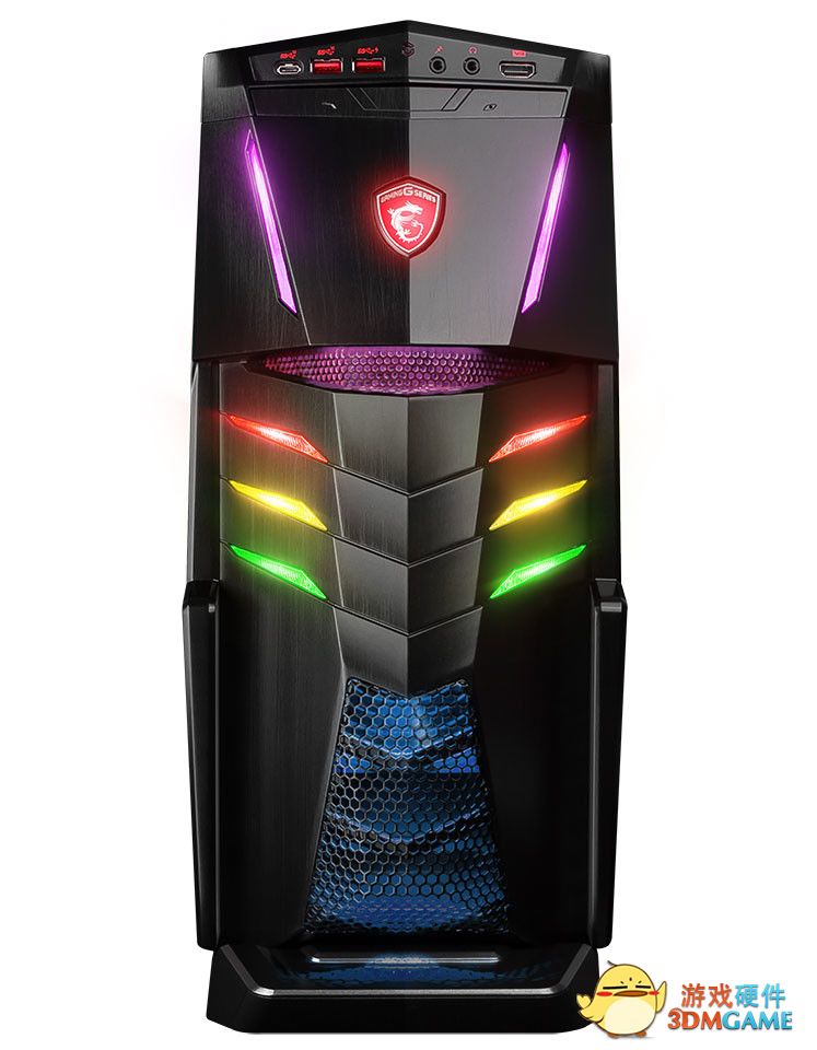 侧面有大面积的散热网。Aegis Ti游戏主机全系列将配备擅长超频的 K系列处理。