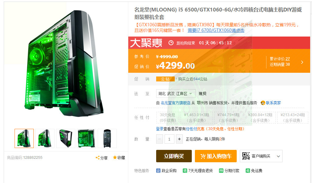 原价4999元的名龙堂主机现在只需4299元,GTX1060的显卡应对目前市面上的任何游戏都能保证流畅,LOL、Dota2、守望先锋等等竞技类游戏更是不在话下。