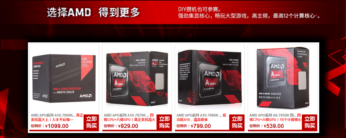 除了基于APU打造的DIY整机产品,京东商城也为广大DIY玩家提供了多款知名APU产品来确保集显玩家取得好名次,这里面包括了APU旗舰产品A10-7890K、A10-7870K以及拥有高人气的次旗舰产品A10-7860K以及主流高性价比APU代表A8-7650K。相信有这些优质核心作保障,前来参赛的玩家一定能够获得自己心中期望的成绩。