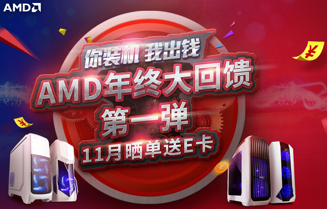 伴随着融合技术的日新月异以及DIY玩家日常使用、消费习惯的日益更新。基于融合型处理器所打造的整合平台已经越来越多地成为了大家的首选。而作为目前整合平台市场的领军产品,来自AMD的APU也已经成为了众玩家选购的焦点产品。在2016年已经过去的10个月里,AMD已经为我们带来了三期“你装机我出钱”活动,随着年底以及双11的临近,AMD再一次将推出年终大回馈晒单送E卡活动来答谢消费者的支持。