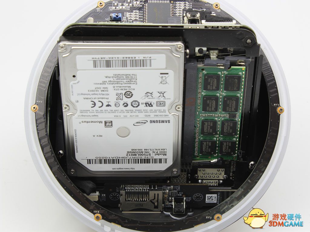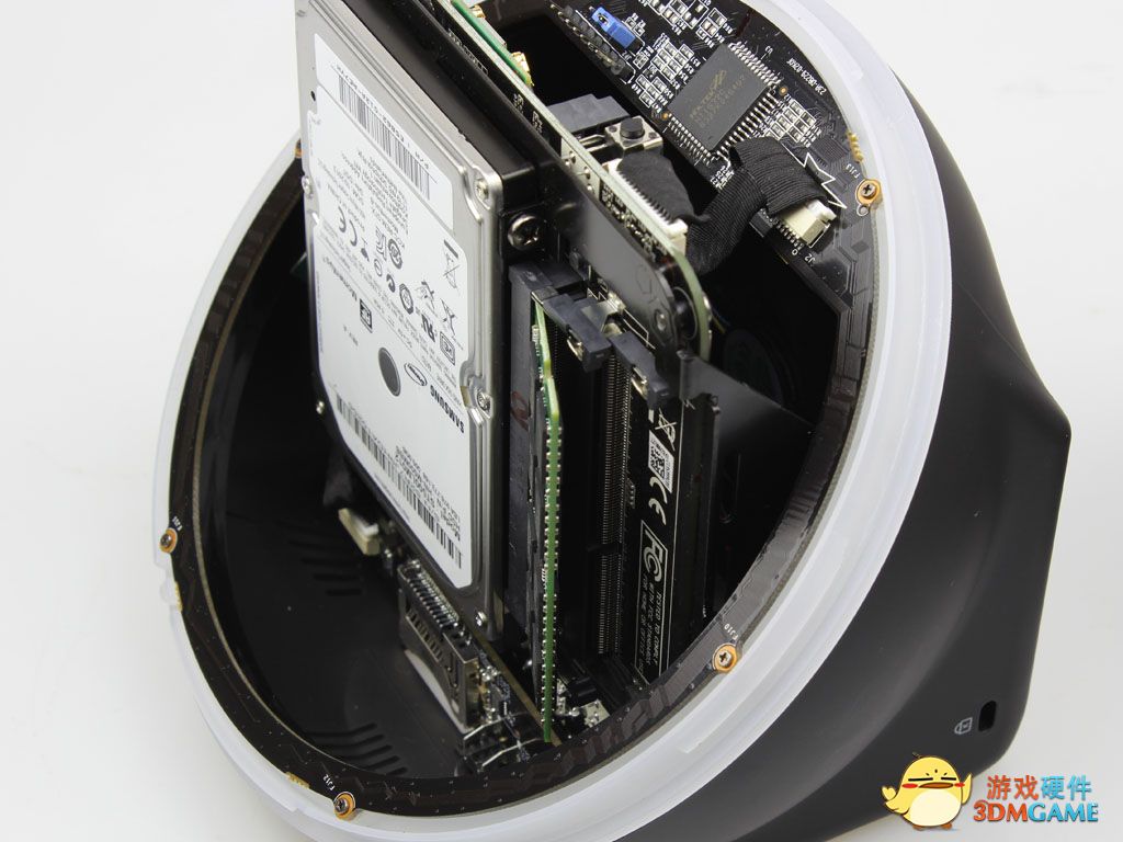 提供两个内存插槽,mSATA+SATA双盘模式,,便于用户拓展存储。且拆卸比台式机更加的简便,在主机的后下方,有一个凹陷的手指印的解锁槽设计,用户只需将手指按在上面将上盖旋转至开锁标志处,即可轻松拆开机器,免去很多拆装烦恼,轻松便捷。