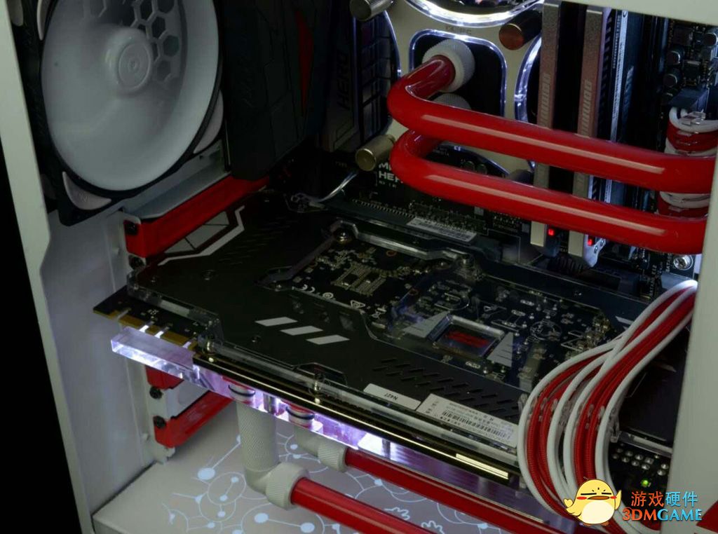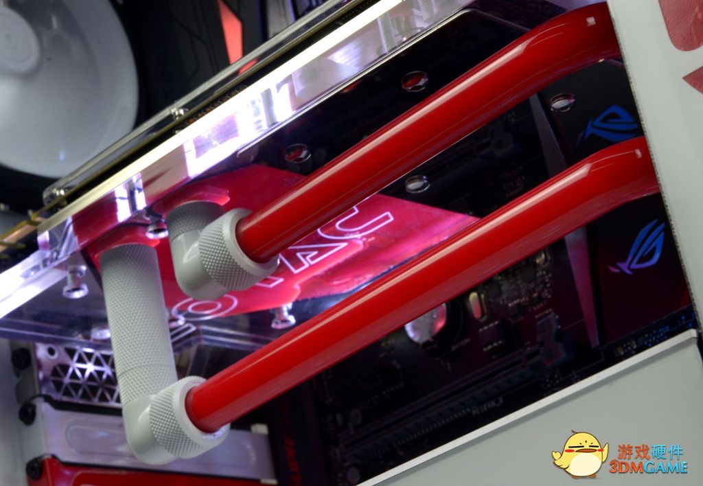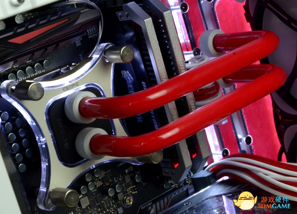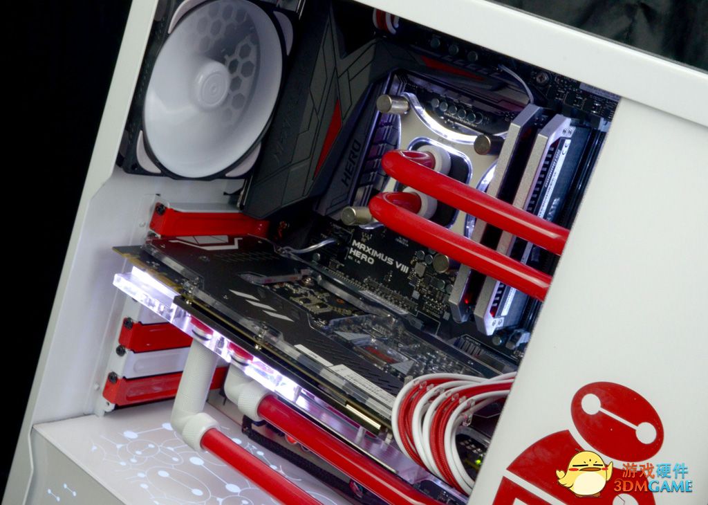 红色的水冷液搭配红色的大白图案以及白色的机箱主元素,十分温馨。