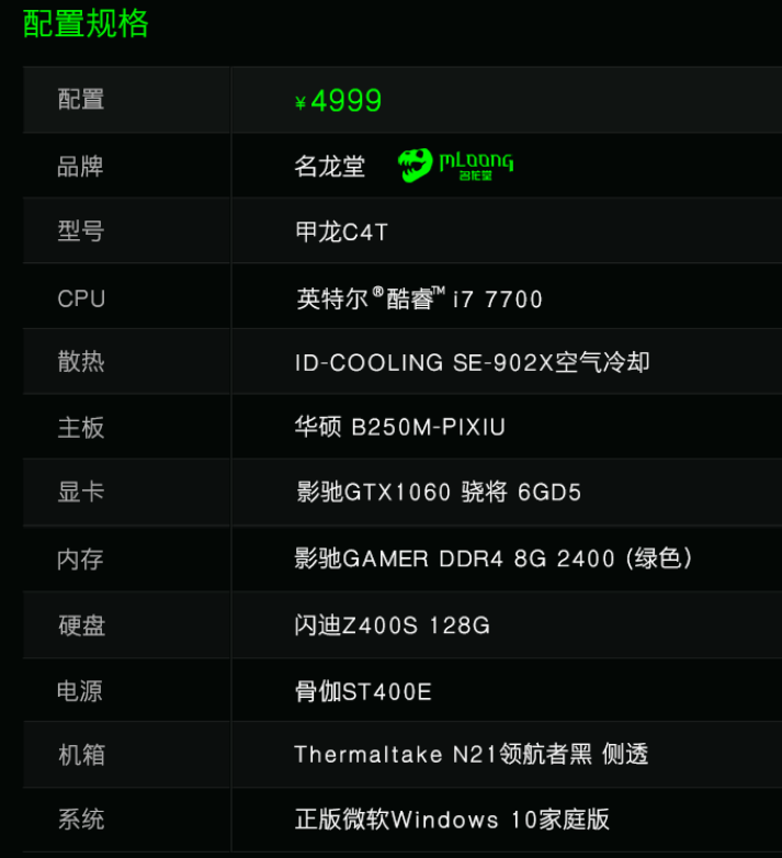 在寝室开黑没有一台高配置的机器这是不行的,今天的主角-名龙堂甲龙c4t教你玩转各大游戏,我们先从配置领略它的魅力。