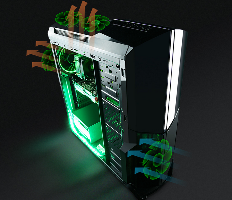如此性能强大却和同代i5整机同档价位,简直性价比非凡,完全符合也满足在校学生玩家的需求。当然除了主打性价比这款整机还有很多方面都做的可圈可点的,在机箱上选用的是Thermaltake黑绿的配色信仰加成,在散热方面重点升级,采用双热管塔式散热器加上智能风扇启停技术,低负载风扇完全停转,打造静音游戏环境省心省力,同时机子在接口方面同时支持DVI、 HDMI 、DP 等多种接口,满足玩家的日常需要丰富玩家的生活。