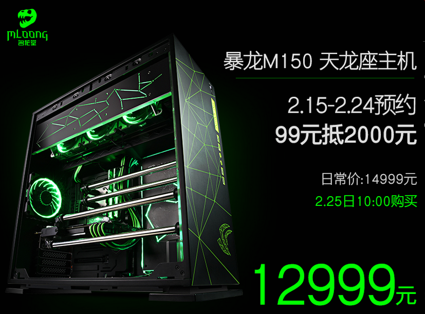 在概念产品上,名龙堂一直都是走在DIY电脑行业的最前端,打破了MOD概念产品在量产格局上的不可能,率先量产,为更多的玩家谋取福利。这是名龙堂一直想做并且真正做到了的,“名龙堂为定制而生”这不仅仅是一句口号更是名龙堂的信仰。暴龙M150天龙座就是名龙堂的诚意之作,现在这款整机全年价格触底在天猫上99元抢先预约立返2000元!2月25号截止,时间紧迫!全球仅限10台,非常稀有!赶紧去预约,再等就来不及了!