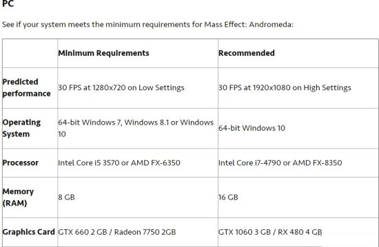 根据官方的配置要求,游戏最低要求需要I5-3570和GTX660显卡,推荐配置则需要I7-4790和GTX060 3,总体来说要求比较高,下面小编就以此推荐一套刚好合适的5K级主机配置方案,能够轻松驾驭《质量效应:仙女座》最高画质,同时也为入门级玩家省去不少装机和选择的烦恼。