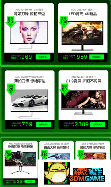 拥有一台 强大炫酷的主机但没有一台顶级的显示屏与之搭配这肯定不是你愿意看到的,好马配好鞍,懂你的名龙堂在电脑狂欢活动期间还特地准备了多款显示器产品搭配销售,从超薄窄边框到大屏曲面,从家庭适用屏到144HZ专业电竞屏,最高直降410元,身临其境就在下一秒。