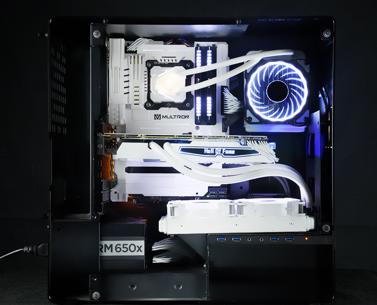始于颜值,忠于颜值。对于好看的定义不能就表面浅浅而谈真正的美是里外如一的美,就比如这台暴龙M90,除去低调奢华的黑色外表它还有一个亮丽时尚的炫白内在,白色定制主板盔甲,白色硅胶定制模组线,白色定制水冷头,白色炫光风扇······触目便是一片白。黑与白是鲜明的对比色在这台主机上却又无比和谐统一,颜值党是绝对抵制不住来自它的诱惑。